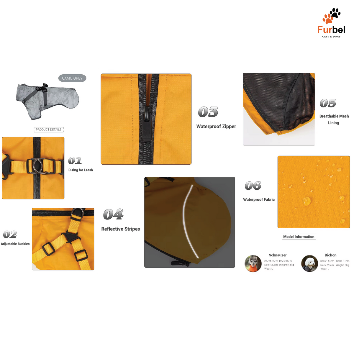 Made from durable, waterproof material, the jacket shields your pet from rain and wind while the breathable fabric ensures comfort without overheating. Equipped with a built-in harness opening, it’s easy to attach your leash securely without removing the jacket.